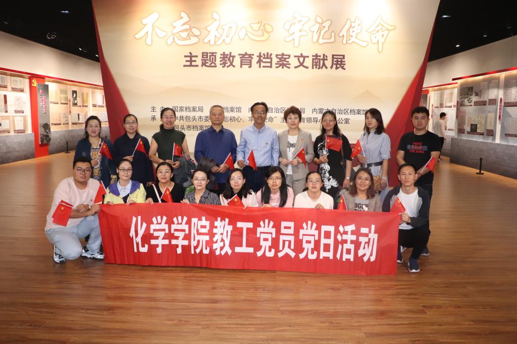 为庆祝中华人民共和国成立70周年,深入学习贯彻习近平总书记关于“不忘初心、牢记使命”主题教育系列重要讲话、重要指示批示精神,推进“不忘初心、牢记使命”主题教育工作,929日下午,化学学院党总支开展了“献礼七十年”主题党日活动,组织师生党员赴包头美术馆参观“不忘初心 牢记使命”主题教育档案文献展,通过一场思想政治的洗礼,引导广大师生党员发扬革命精神,传承红色基因,以不忘初心、牢记使命的政治责任迈向新征程。