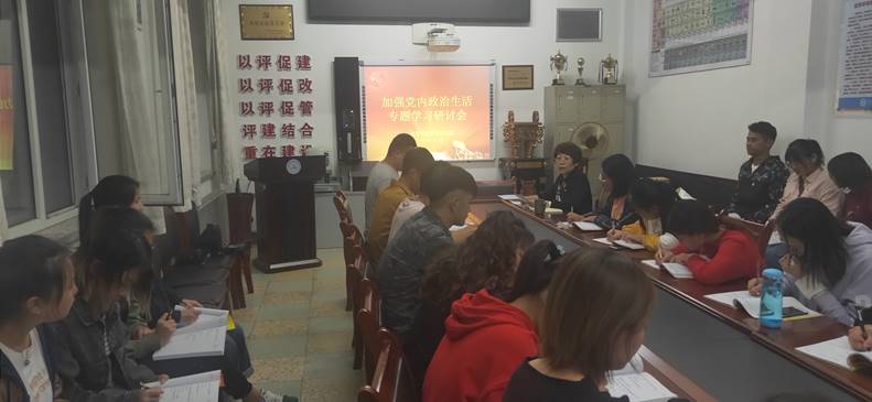 9月18日晚,化学学院学生党支部组织开展了加强党内政治生活专题研讨会。化学学院党总支副书记冯丽老师、辅导员张旭老师及全体学生党员参加了此次会议。