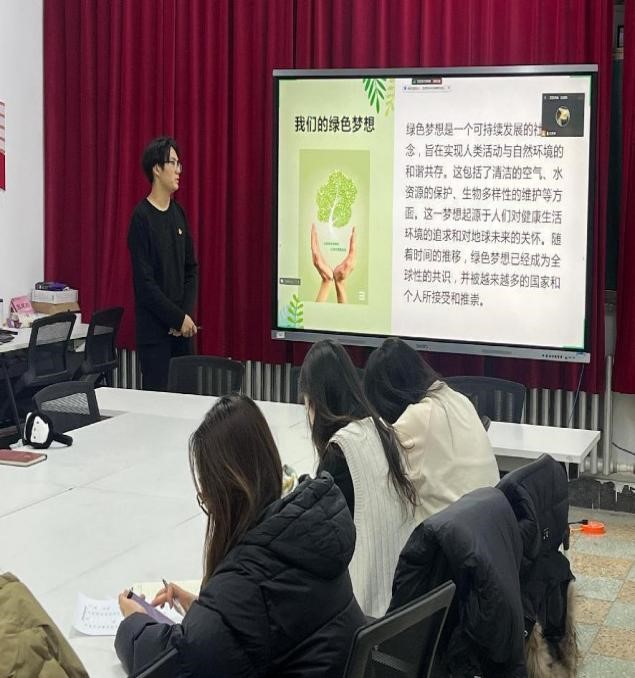 11月14日,由邬憬悦同志分享的“祖国绿动,今日启航——祖国绿兴党领航,今朝奋进谱华章”主题党课在齐志楼317会议室拉开帷幕。邬憬悦同志详细阐述了绿色发展理念的内涵。她指出,绿色发展不仅仅是环境保护,更是一种涉及经济、社会、文化等多方面的系统性变革。要弘扬中华民族尊重自然、顺应自然、保护自然的传统文化,培育绿色文化价值观。