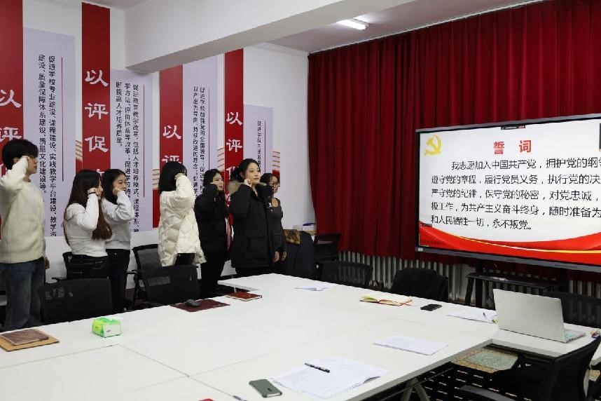 在代组织委员许思功同志的领誓下,全体预备党员右手握拳,齐声念出入党誓词:“我志愿加入中国共产党,拥护党的纲领,遵守党的章程,履行党员义务,执行党的决定,严守党的纪律,保守党的秘密,对党忠诚,积极工作,为共产主义奋斗终身,随时准备为党和人民牺牲一切,永不叛党。”字字铿锵,句句千钧,表达了他们对党的无限忠诚和为共义主义事业奋斗终生的坚定决心,气氛热烈,振奋人心。