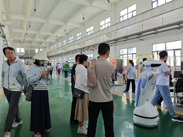 在职业技术师范学院现代控制技术实训中心,教师们观摩了工业机器人编程与智能检测系统操作,中心负责人通过结合PLC编程演示与自动化生产线案例,系统阐释了现代控制技术在应用型人才培养中的课程重构逻辑。