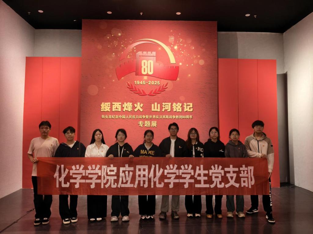 为深入开展党史学习教育,弘扬伟大抗战精神,增强爱国主义教育和国防意识,2025年9月27日,化学学院应用化学学生党支部、化学与能源化学学生党支部组织党员前往包头博物馆,参观了《绥西烽火 山河铭记——包头市纪念中国人民抗日战争暨世界反法西斯战争胜利80周年》专题展。