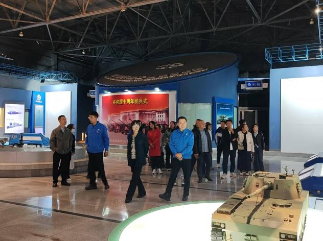 随后,队伍抵达了被誉为中国坦克的摇篮的一机集团。教师们沉浸于展览馆厚重的历史氛围中,不仅为馆内详实的史料和宏伟的现代成就所吸引,更为一代代军工人所展现出的自力更生、精益求精的工匠精神所震撼,对育人使命有了更深刻的感悟。步入展区,坦克、装甲车、火炮等尖端装备立刻映入眼帘。讲解员对其在国防建设中关键作用的阐述,让大家对国之重器的份量有了更真切的体会。尤为令人振奋的是《铁甲雄风》宣传片,它生动再现了中国兵器工业发展的伟大征程,影片中展现的辉煌成就,强烈激发了大家源于党坚强领导的民族自豪与爱国情怀。