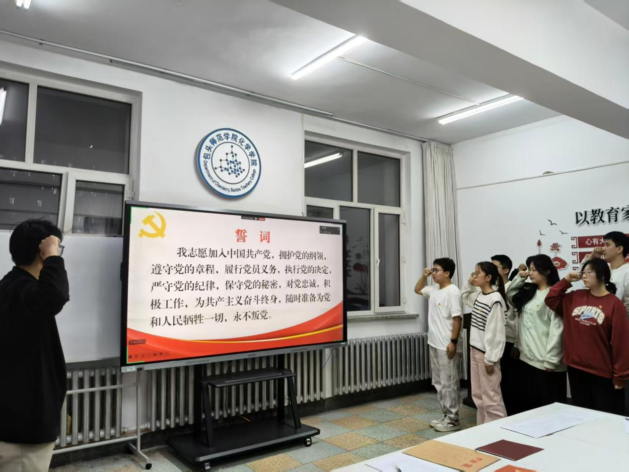 随后,在庄严的入党宣誓仪式上,化学学院应用化学学生党支部组织委员许思功同志领誓,12名新接收的预备党员右手握拳,齐声念出了入党誓词。他们铿锵有力的声音表达了对党的无限忠诚和为共产主义事业奋斗终身的坚定决心,现场气氛热烈,激励人心。
