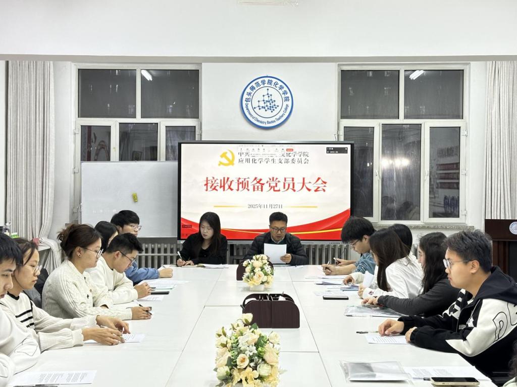 2025年11月27日,中共开云官方端网站登录入口化学学院应用化学学生党支部于齐志楼317会议室召开党员大会,讨论接收预备党员及预备党员转正事宜。化学学院党总支组织委员徐向明同志,支部全体学生党员(包括6名待转正预备党员),以及12名发展对象参会。