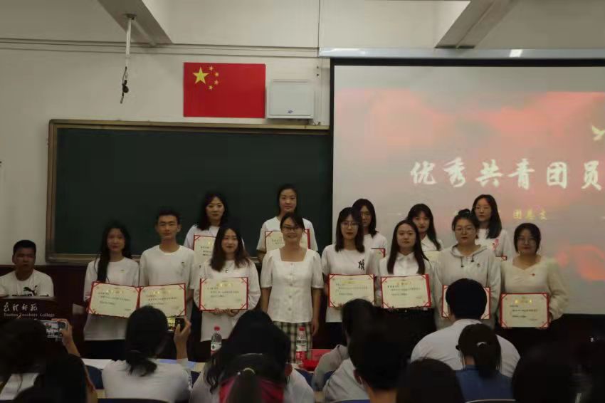 最后,由丁老师代表团总支对2020-2021学年度“五四”红旗团支部、“五四”红旗团小组、优秀共青团干部、优秀青年志愿者、优秀共青团员和优秀团日活动分别进行了表彰。