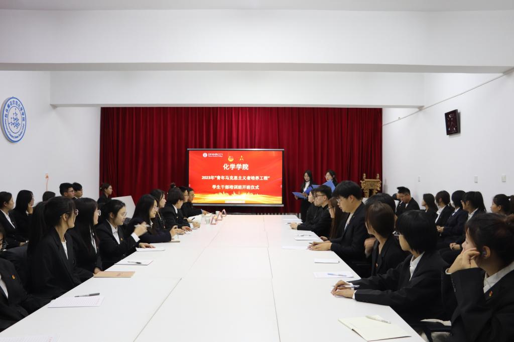 为深入学习贯彻习近平新时代中国特色社会主义思想和习近平总书记关于青年工作的重要论述,深化实施“青年马克思主义者培养工程”,培养一支政治坚定、德才兼备、勇担重任、全面发展的青年队伍,使之成为中国特色社会主义事业的建设者和接班人。化学学院于2023年11月13日晚19:20在齐志楼317举行了2023年“青年马克思主义者培训工程”学生干部培训班开班仪式。出席本次开班仪式的人员有化学学院党总支副书记高俊芳、学生第二党支部书记徐向明、团总支负责人李丽、各班学生干部以及学生会成员。