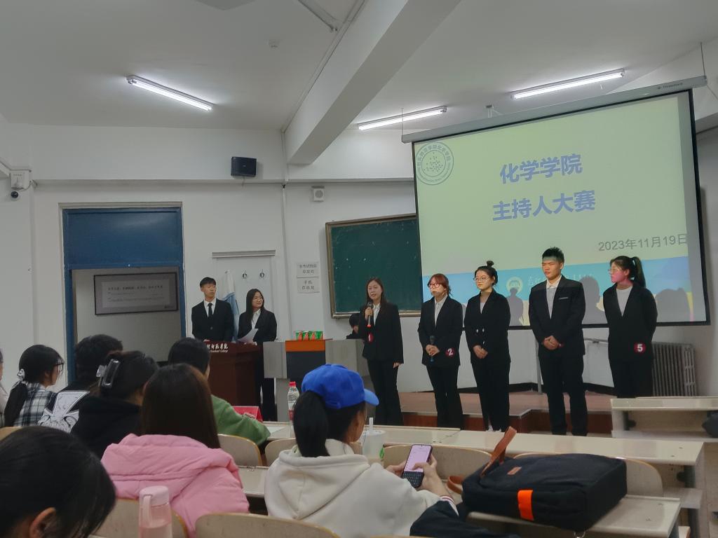 为培养和发掘大学生的口头表达能力和随机应变能力,并锻炼学生实践能力及发挥自身特长,2023年11月19日晚17:30,化学学院在博学楼406举办了“校园青春绽豪情,我的未来在手里”主持人大赛初赛。