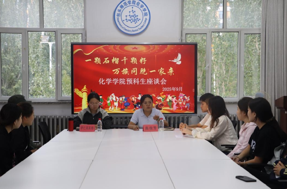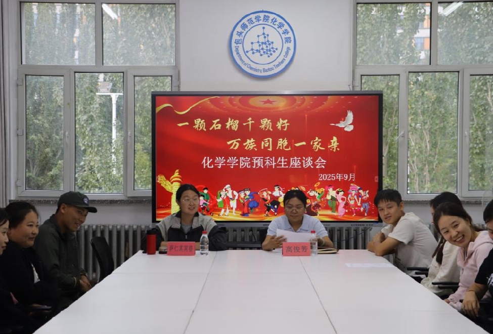 为深入贯彻党的二十大精神,落实我校第42个民族团结进步活动月部署,9月18日下午,化学学院在齐志楼317组织召开少数民族预科生座谈会。学院党总支副书记高俊芳、蒙古族教师萨仁其其格与各年级预科生共同参会。