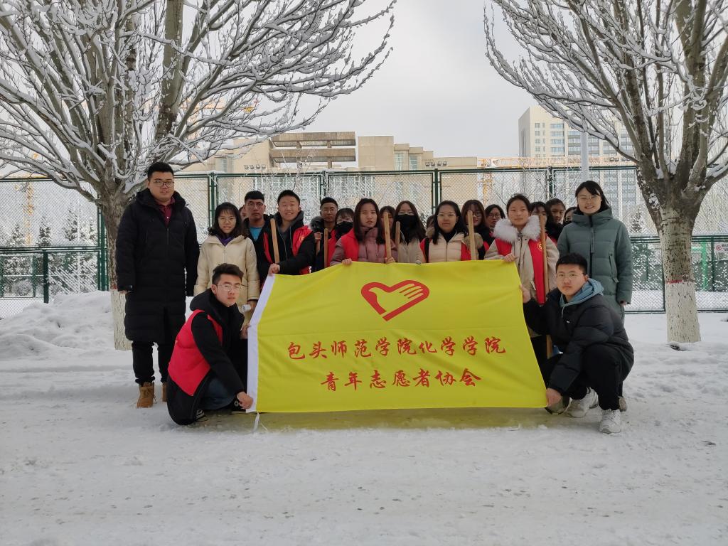 2019年12月15日,一场大雪覆盖了整个校园。为了尽快消除道路积雪给全校师生带来的诸多不便,化学学院青年志愿者协会本着“服务校园”的宗旨,于12月16日和17日分别组织同学们清理了齐志楼北侧和南院东墙外的积雪。