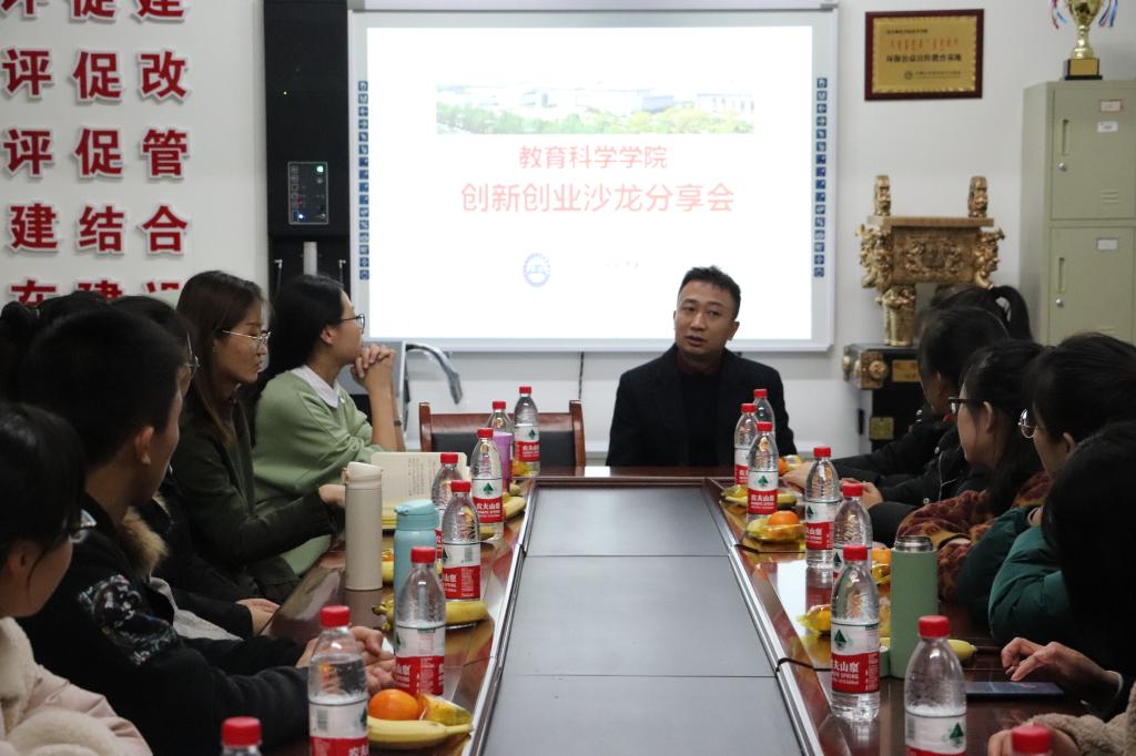 为了培养大学生创新创业意识、增强对市场的理解、为众多有创业想法的同学答疑解惑,2019年11月26日晚19:00化学学院和教育科学学院举办了创新创业沙龙分享会,出席本次分享会的有我校教育科学学院张新校友、化学学院白小军校友和化学学院辅导员张旭老师、教育科学学院辅导张思秦老师。