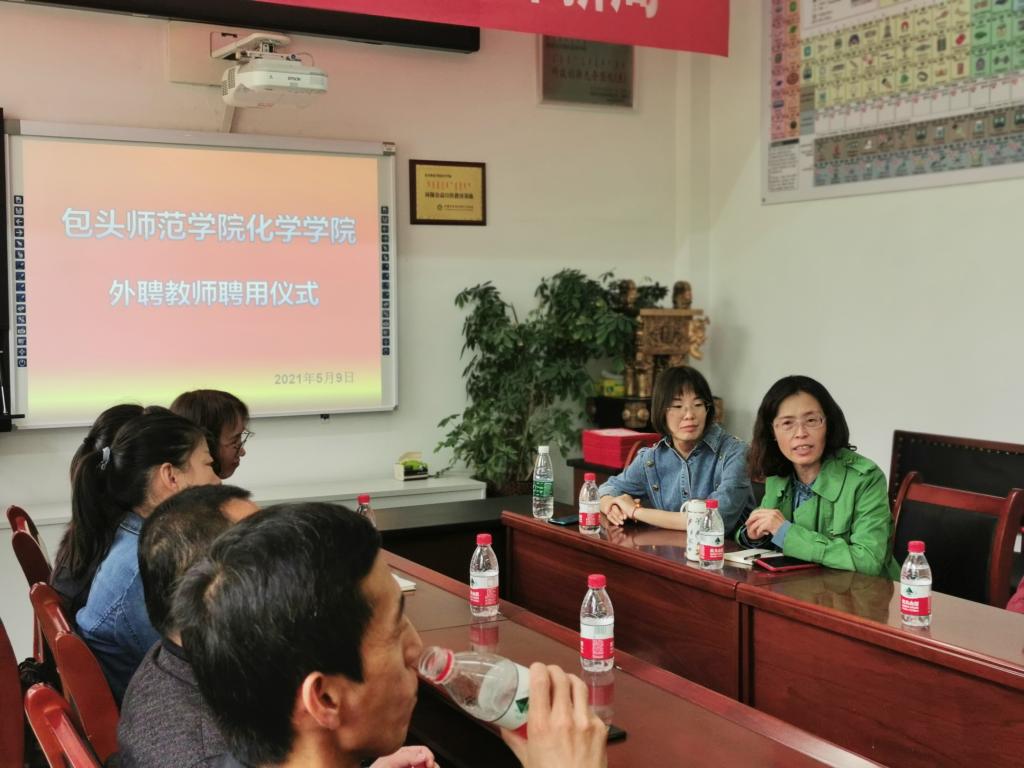 为了深入推进地方高校师范生人才培养育人机制,切实做好师范生教育与中学教育对口衔接,提升高校师范生培养质量,经学院领导和包头市教育局化学教研员王丽霞老师多方筹措,积极与地方中学教师沟通,聘请多名中学教师参与高校师范生培养。2021年5月10日上午,学院副院长张骁勇老师、系主任马学林老师在学院会议室举行了外聘导师聘用仪式。