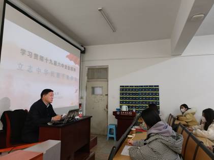 12月3日下午,校党委副书记施纪华同志在齐志楼301教室以《学习贯彻十九届六中全会精神,立志中华民族千秋伟业》为题,为化学学院师生讲授思想政治理论课。学生党支部支委、全体辅导员及部分党团员参会学习。