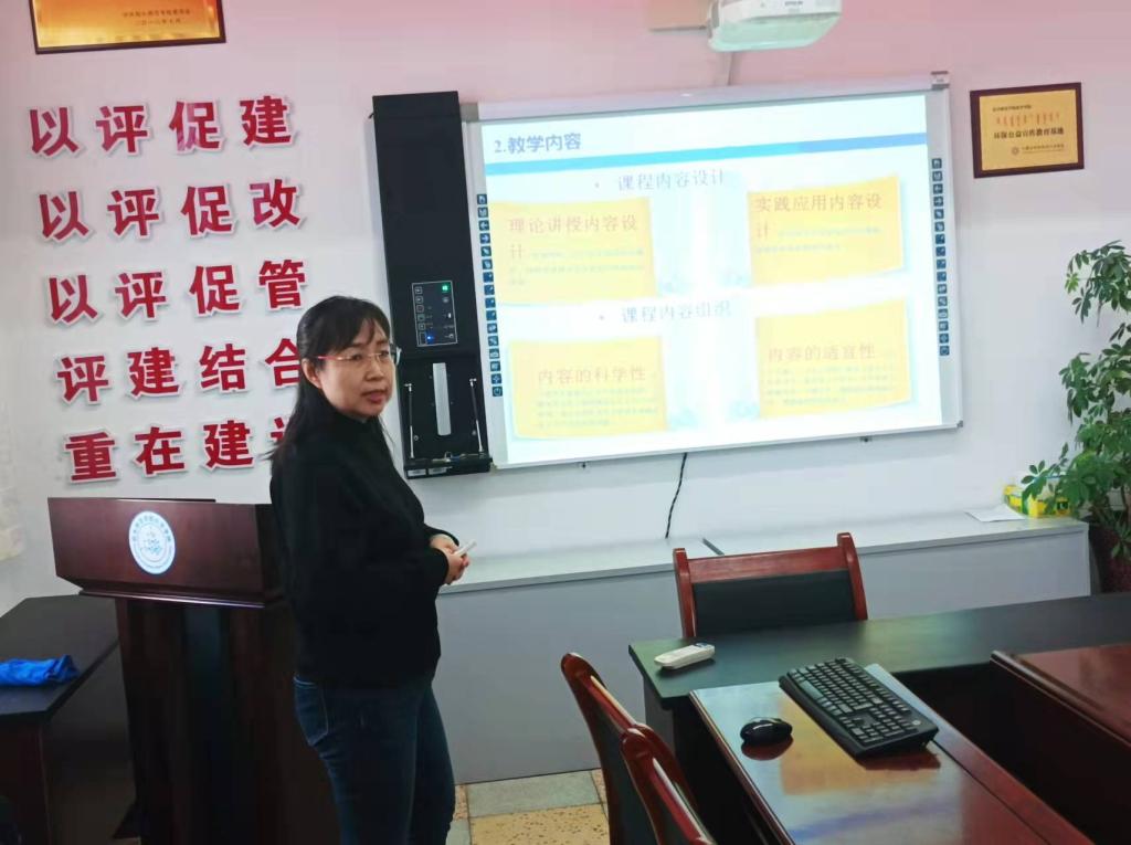 大赛由学院工会和教务办组织,共有5支团队参与了本次比赛,每组选手按抽签顺序进行,通过15分钟的课程设计说课,最终选出刘丽静团队、杨坤团队、刘路团队分别参加正高组、副高组、中级组参加校级第二届教师教学创新大赛。
