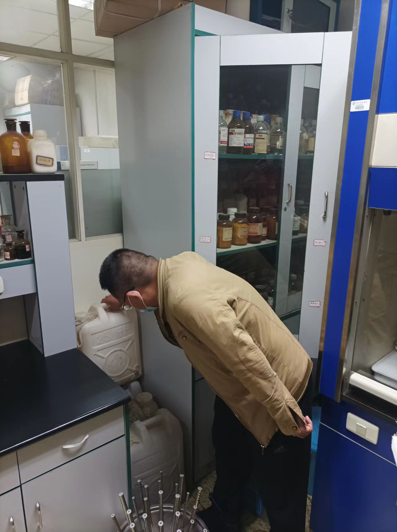 为全面落实《教育部办公厅关于开展加强高校实验室安全专项行动》和《内蒙古自治区教育系统危险化学品安全风险集中治理工作方案》的通知,坚决防范遏制实验室安全事故发生,化学学院于4月15日下午,化学学院副院长张骁勇、实验中管理人员(雍胜利、刘莉、张高峰)展开实验室安全大检查。