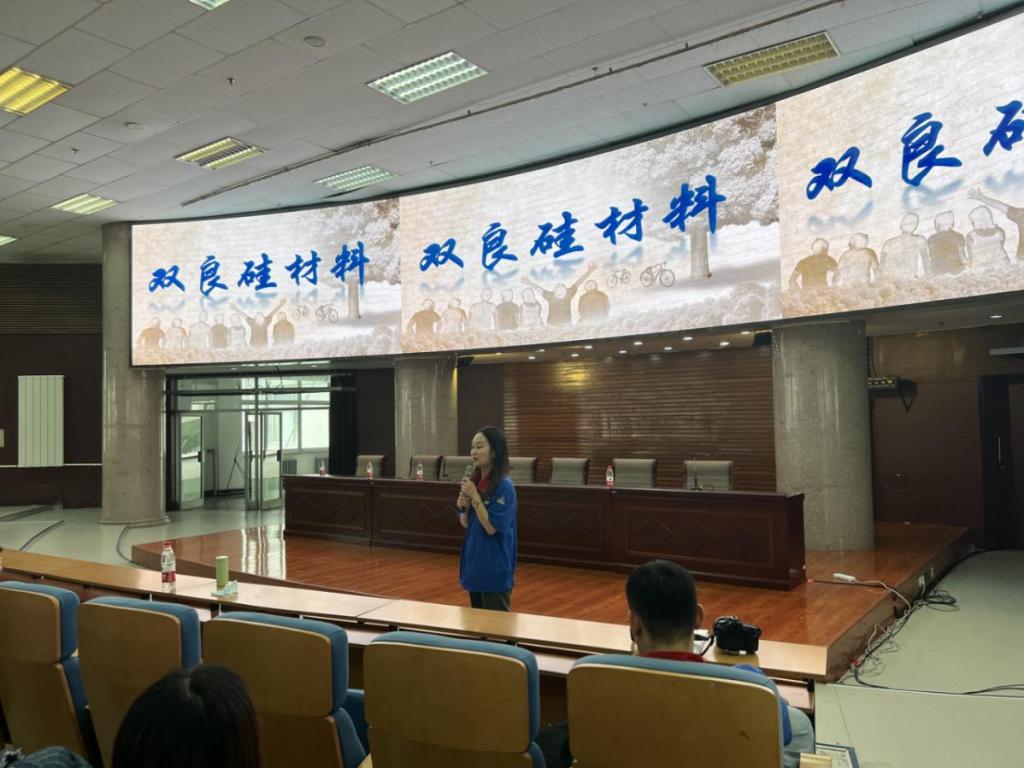 在招聘会上,双良硅材料(包头)有限公司吕倩经理和国城控股集团有限公司郭江涛经理分别为同学们进行了详细的介绍,同学们对公司企业文化和招聘岗位信息及薪酬情况也有了细致的了解,互动环节两位负责人详细解答了同学们的疑问。