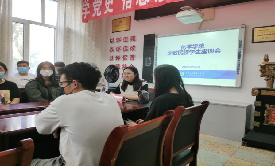 习近平总书记在党的十九大上提出的“铸牢中华民族共同体意识”,为实现中华民族的伟大复兴指明方向。为进一步深化民族团结进步教育工作,推进铸牢中华民族共同体意识教育,化学学院团总支于2022年9月30日召开少数民族学生座谈会。我院蒙古族、苗族、瑶族、侗族、锡伯族、回族、满族、黎族、土家族、达斡尔族及汉族等11个民族的学生代表参加了座谈会,座谈会由蒙古族教师萨仁其其格博士主持。