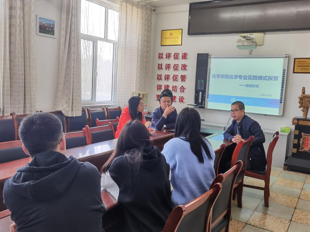 化学学院副院长张骁勇、系主任马学林、化学学院外聘教师包头市第四中学乔琳老师、20级化本班三位师范生参与了座谈。张骁勇老师介绍了这次交流目的,将师范生教学实践融入到日常教学工作中,使其实践长期化和持续化,强化实践教学和实践教学工作日常化,加强师范应用型人才培养力度,提升师范生实践技能,对三位师范生提出了实践要求(做好教学技能、班级管理、育人工作、熟悉中学教材和课标等工作);系主任马学林老师也对三位师范生和乔琳老师进行了嘱托,希望三位同学在乔老师师带徒的作用下,顺利完成日常学习的同时,做好师范生实践工作,为后续开展其他师范生实践融入教学树立好榜样;最后乔琳老师也做了表态发言,这是首次大三学生开展长期、持续化实践,会认真对待,严格要求,希望能够和学院、学生一起取得较好的成绩。