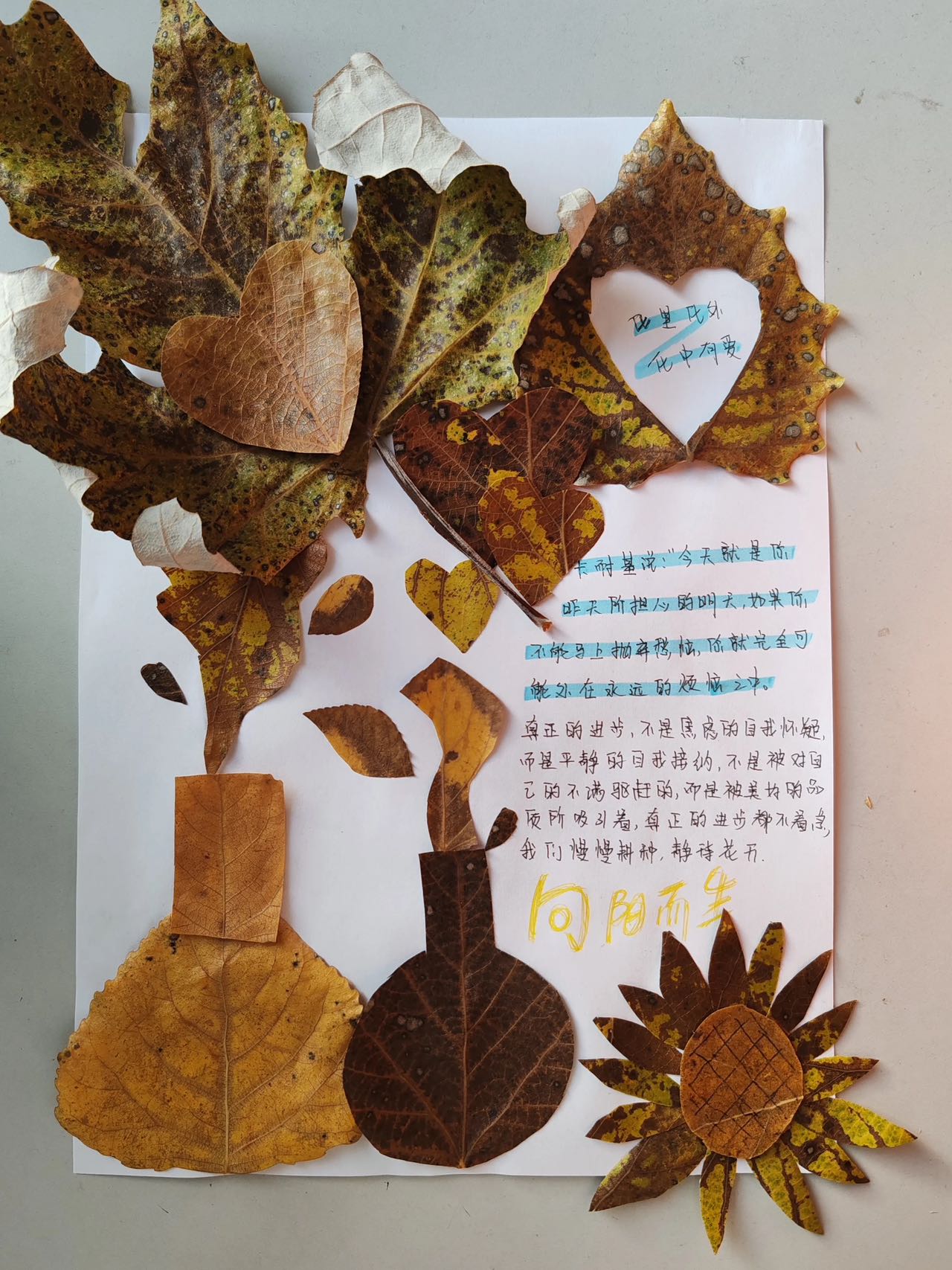 活动期间,同学们认真寻找了各种秋叶,如红色的枫叶、金黄的银杏叶、深绿的柳叶等。他们运用剪刀将秋叶巧妙地剪裁成各种形状,然后粘贴在画纸上。在充分发挥想象力的基础上,学生们将这些秋叶粘贴成与化学、心理相关的图画,创作出了一幅幅精美的剪贴画作品。同时,他们还为每幅作品配以相关的简介,以描述其心理状态。