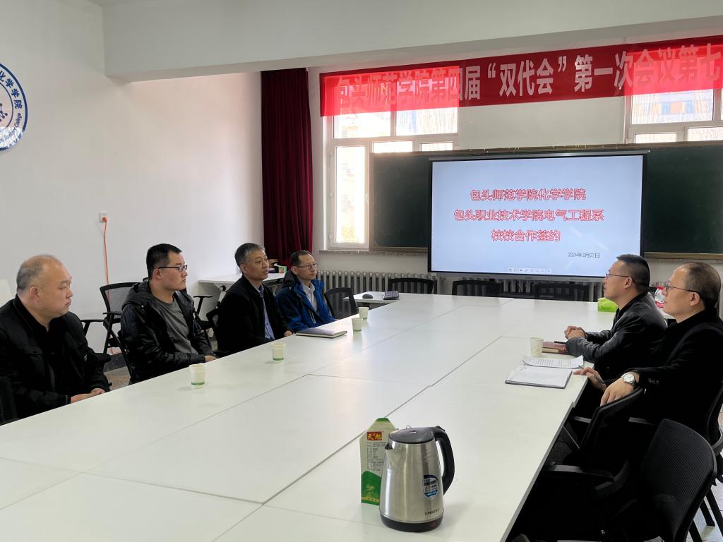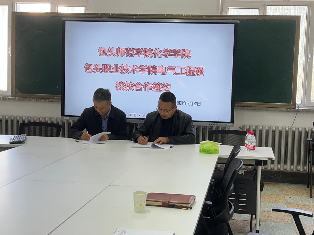 3月22日,化学学院与包头职业技术学院电气工程系在齐志楼317会议室签订校校合作协议,共同开启了一段全新的教育合作之旅。此次合作旨在通过资源共享、优势互补,推动两校应用化学专业建设,为培养更多高素质的应用化学专业人才贡献力量。