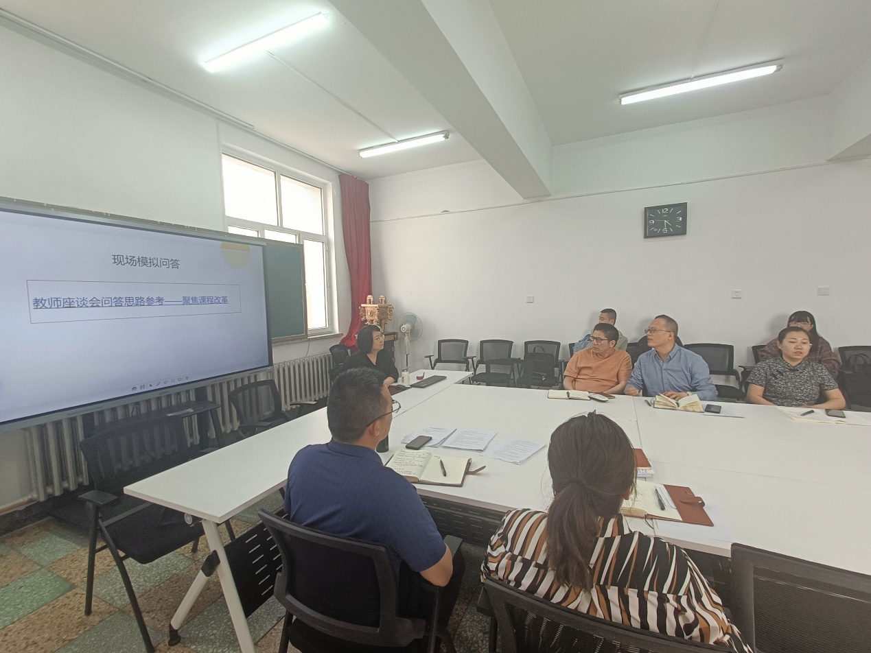 李芳教授通过对照认证指标的工作内容和达成标准,聚焦课程改革,从学生中心、产出导向、持续改进和课程思政、第二课堂等多个角度,对在场教师逐一进行现场模拟问答,并针对老师们的解答情况进行指导,极具针对性和实效性。与会老师纷纷表示通过培训对师范专业认证工作的重要性和复杂性有了更深的认识,明晰了今后的工作方向,下一步将对照改进工作、加强交流与沟通,提高工作质量。