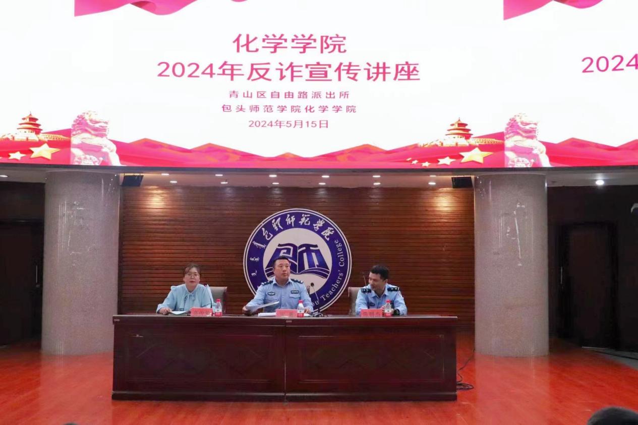 为加强校园反诈防骗宣传力度,提高学生鉴别与防范诈骗手法的能力,增强生自我防范意识,预防和减少诈骗事件的发生,守护平安和谐校园,2024年5月15日晚,化学学院与自由路派出所联合开展了反诈宣传讲座。本次讲座由化学学院党总支高俊芳副书记主持,化学学院辅导员及全体学生参加本次讲座。
