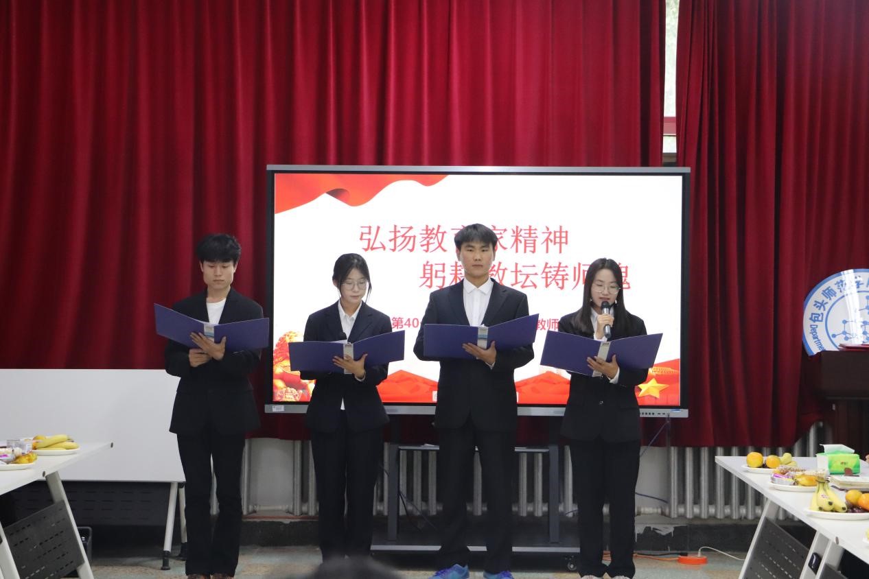首先,化学学院的学生献上了精彩的文艺表演,诗朗诵《以教师之名》以及二重唱《追光者》,向全体教师献上节日的祝福。