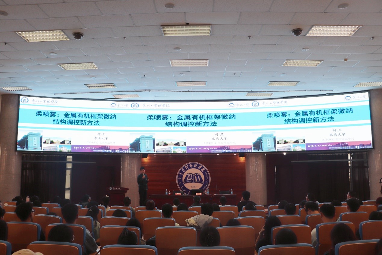 报告会上,付昱教授以“柔喷雾:金属有机框架结构的微纳调控新方法”为题,从学术概念、发展历史、研究价值等方面介绍了金属有机框架结构现阶段的研究趋势以及发展局限性,提出“柔喷雾法”在金属有机框架结构的微纳形貌及多级结构调控中的积极作用,并对该方法的研究思路、原理、理论基础、应用场景以及发展前景进行介绍。付昱教授的讲解生动有趣、逻辑循序渐进、学术思想缜密,受到了参加报告会师生的一直好评。整场学术报告既开拓了我院青年教师的学术眼界,又极大地激发了我院学生的学术兴趣。