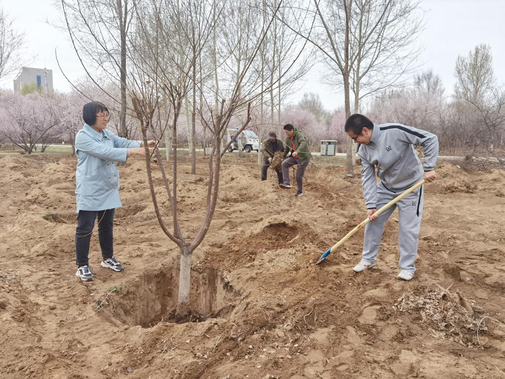 春风拂绿,万象更新,2021年4月2号下午14:30,化学学院教师来到包头市赛汗塔拉植树点,同工作人员一起参加了义务植树活动,人人爱绿护绿,共同建设人与自然和谐共生的美丽包头