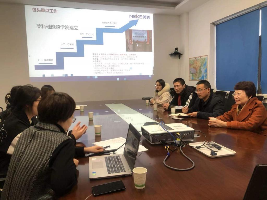 2021年12月8号,化学学院与美科硅能源围绕校企合作进行了洽谈,双方初步达成美科班合作协议。