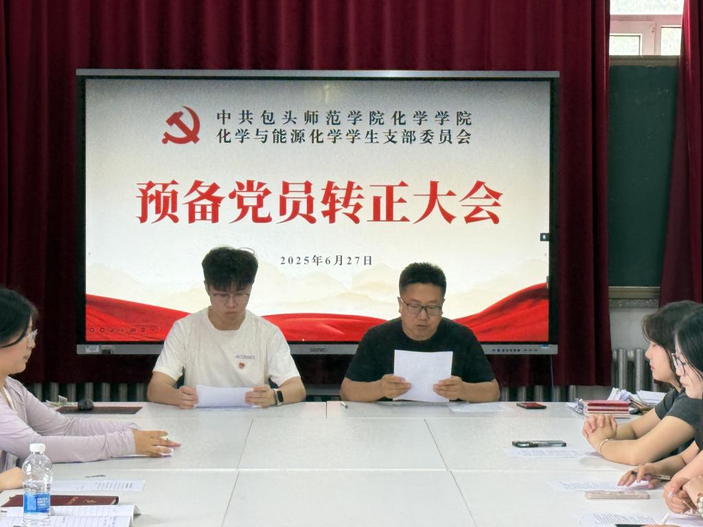 2025年6月27日,化学学院化学与能源化学学生党支部于齐志楼317会议室召开党员大会接收2025年上半年预备党员预备党员转正。化学学院化学与能源化学学生党支部书记徐向明同志、支部全体学生党员、6名待转正预备党员以及6名发展对象参加本次会议。