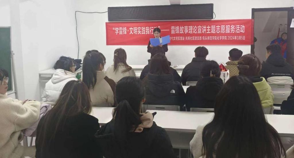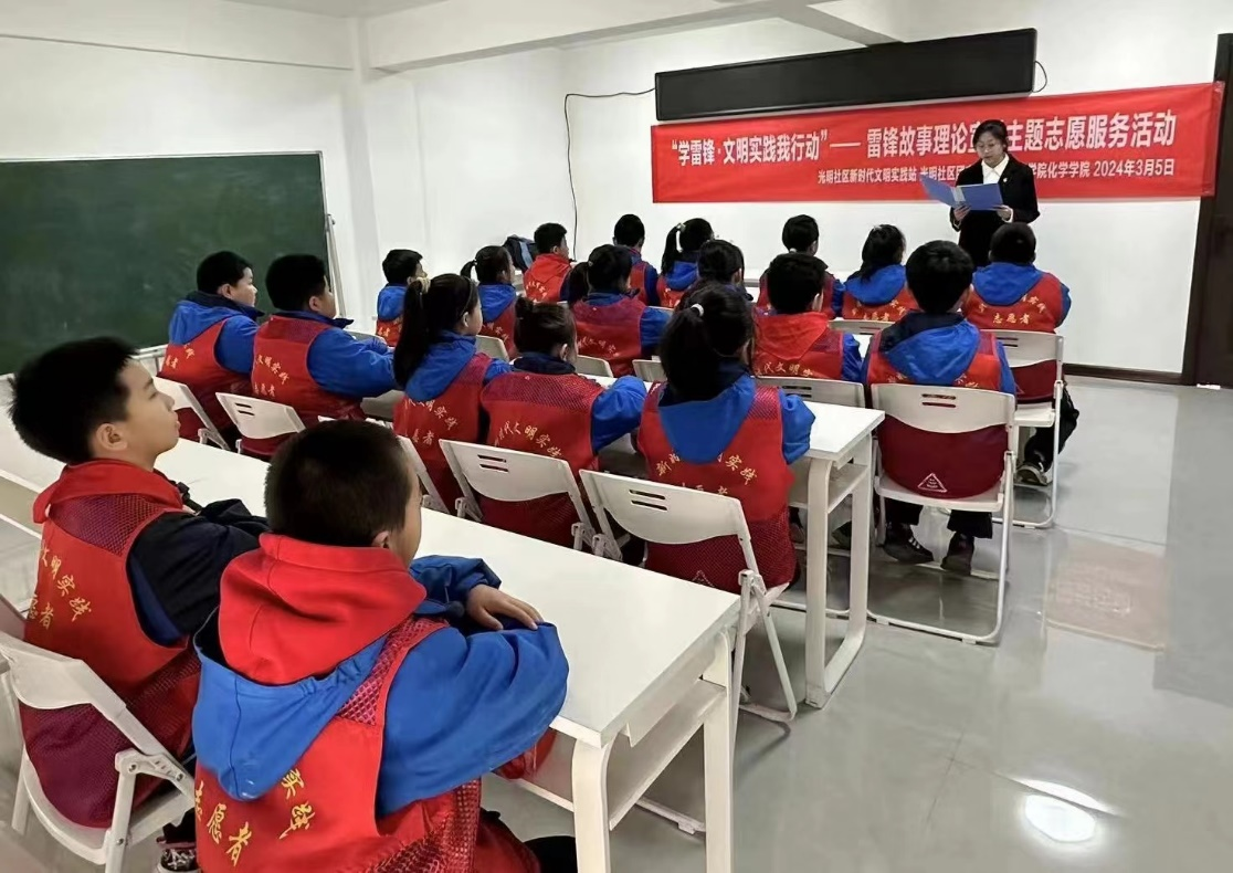 “学习雷锋好榜样,忠于革命忠于党,爱憎分明不忘本,立场坚定斗志强……”3月5日化学学院团总支、化学学院青年志愿者协会联合光明社区新时代文明实践站、光明社区团支部共同开展了面向青山区自由路第二小学学生的“学雷锋•文明实践我行动”—雷锋故事宣讲进社区主题志愿活动,宣传践行志愿服务精神,为初春增添一份暖意。