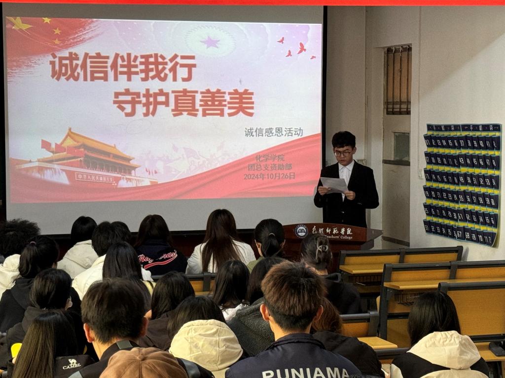为弘扬诚信美德,培养学生正确的道德观念,激励学生从点滴小事做起,以诚信立学,凭诚信立行。化学学院于10月26日举办“诚信伴我行,守护真善美”诚信感恩书信传递活动。