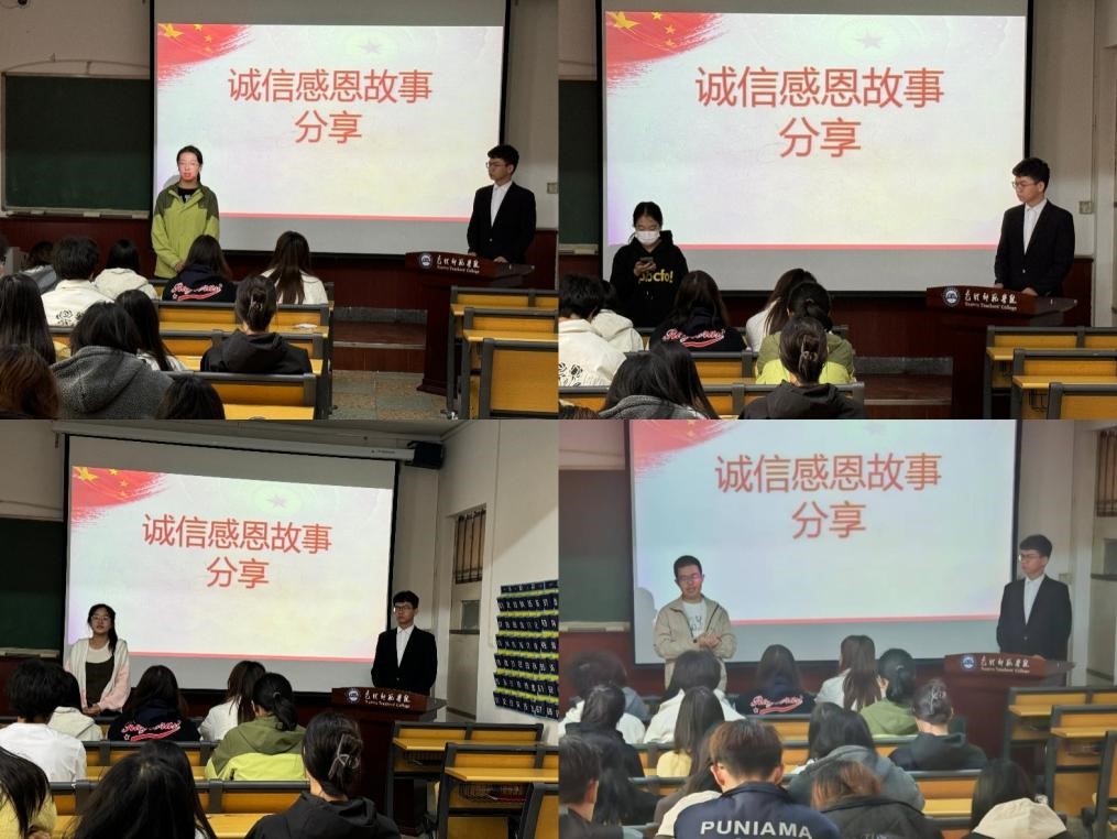 在故事分享环节,多位同学登台分享自己生活中的诚信感恩故事。他们用真挚的语言,讲述着身边人的诚信之举。质朴的言语中,饱含着同学们的真情实感。每一个故事都似一束温暖的阳光,照亮心灵,让我们更加明白要认真对待身边之人和之事,学会以诚信与感恩面对生活。