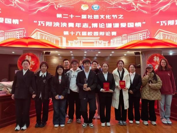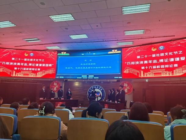 2024年11月21日我校第二十一届社团文化节之“巧辩泱泱青年志,博论谦谦爱国情”第十六届校园辩论赛在学术报告厅举行,化学学院与生态环境学院参与冠亚之争。我院代表队凭借出色的表现成功夺得了本次比赛的冠军。