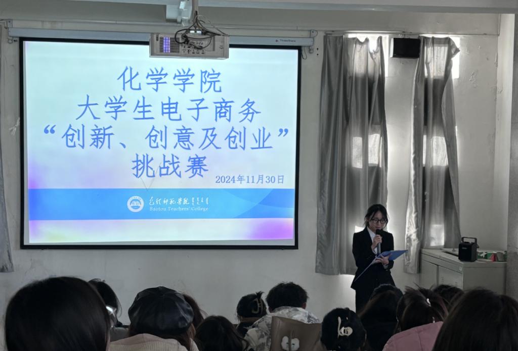 2024年11月30日下午,化学学院大学生电子商务“创新、创意及创业”挑战赛于新逸夫楼124教室成功举办。本次赛事旨在激发我院学生的创新思维与创业热情,为同学们搭建展示才华、交流思想的优质平台,促使学生将化学专业知识与电子商务深度融合,拓展创新应用能力。