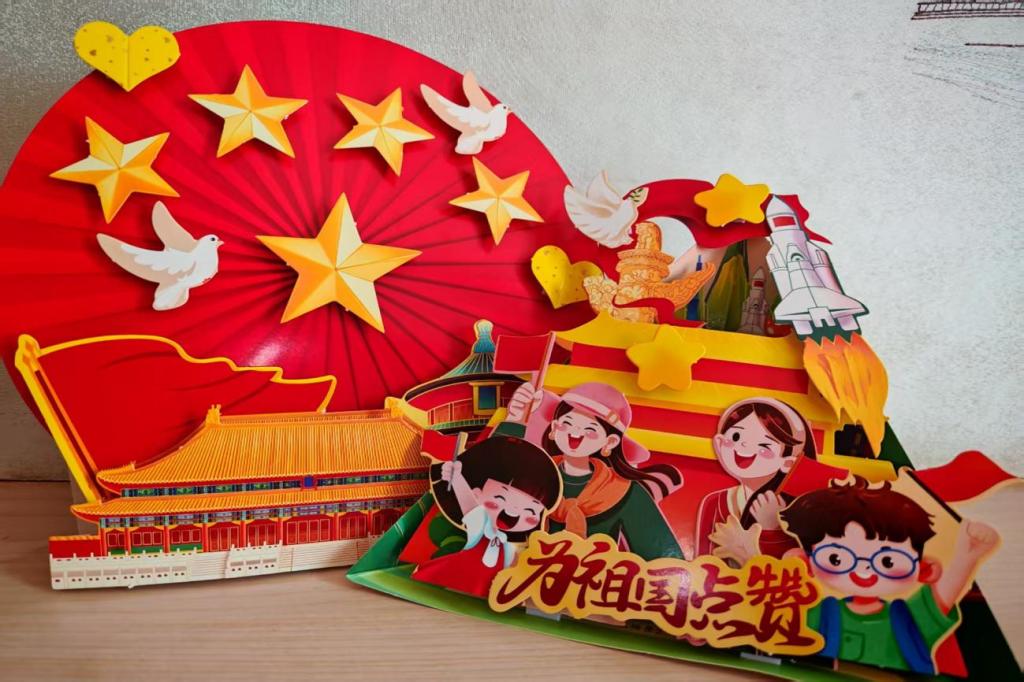 同学们充分发挥专业特长与艺术创意,将废旧材料转化为独具匠心的艺术作品。有的同学用彩纸和剪刀精心剪出了一张张精美的剪纸,将爱国之情融入到每一个剪裁的细节中;还有的同学发挥想象,将废旧纸盒改造成了“战斗机”,承载着自己的航天梦想和对祖国科技发展的赞美。这些作品不仅承载着赤子心,更饱含着同学们对祖国深深的热爱和敬意。