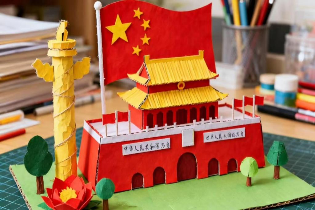 其中,2025级本科生姜锦林同学用废旧纸盒精心制作的天安门模型,以其精巧的结构设计和细致的色彩处理获得一致好评。通过手工制作,我们不仅锻炼了实践能力,更深刻体会到变废为宝的环保理念与创新精神。姜锦林同学详细介绍到。