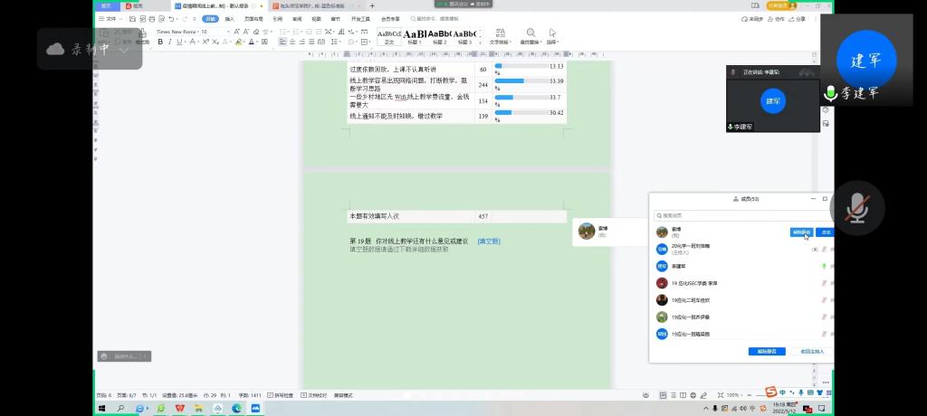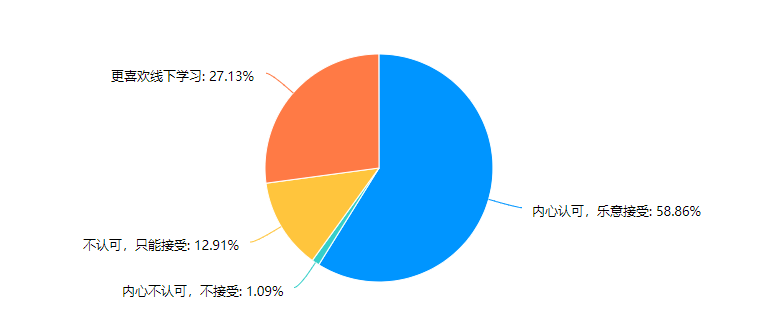 座谈会前夕,学工办向全体非毕业班学生发放了疫情线上学习调查问卷,全面了解和掌握学生对线上教学的满意度等情况,并及时关注和解决困扰线上教学效果的问题,共回收有效问卷457份,超过半数学生对线上教学较为认可,愿意接受。当被问到“您认为影响线上学习效果最主要的因素有哪些?”,回答“学生自主学习能力”占比达86.65%。