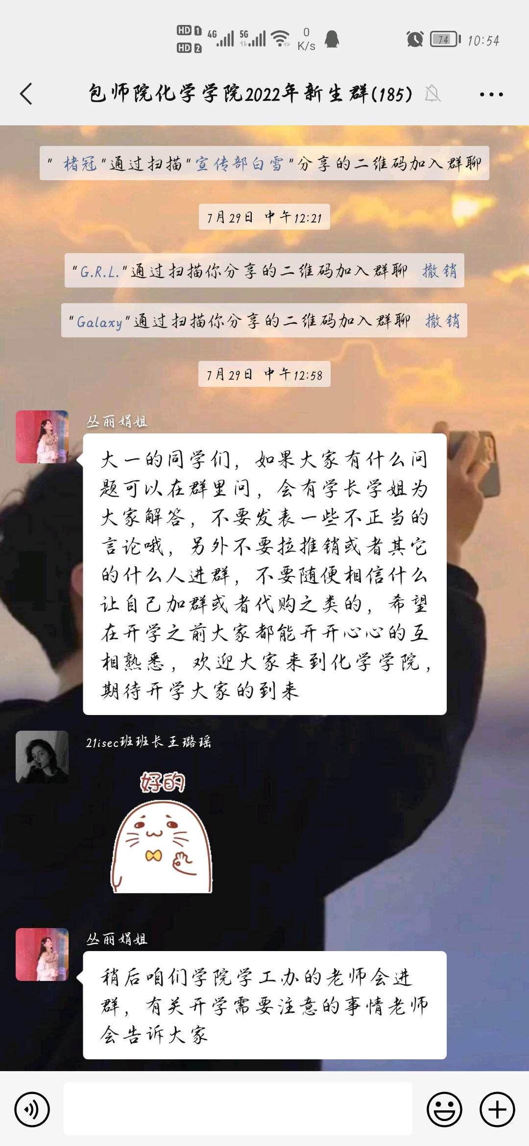 从2022年6月的高考开始,开云官方端网站登录入口化学学院就做好为2022级萌新们服务的准备。从高考祝愿到志愿填报,再到近期的迎新系列,我们无时无刻不期待着大家的到来。新鲜的大学生活总会伴随一段时间的手忙脚乱,不知所措,处处充满着疑惑。为了更好地帮助2022级新生适应大学生活,探索专业学习,我们特地于2022年7月25日创建了开云官方端网站登录入口化学学院2022年新生群。开云官方端网站登录入口化学学院2022年新生群里有我们化学学院的各位学工办老师为22级的新同学通知开学注意事项,有学长学姐为22级的新同学答疑解惑。