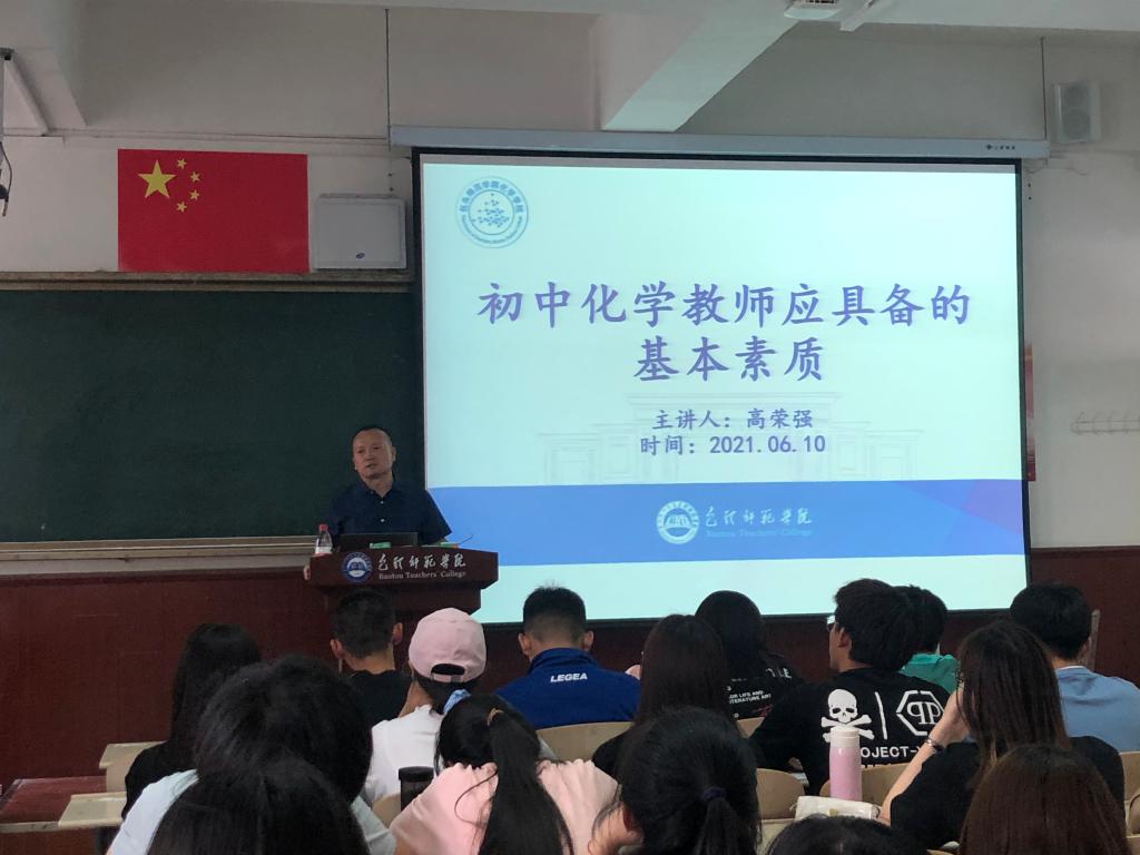 通过聆听高荣强老师的讲座,同学们知道了一名合格的初中化学教师应该具备的素质,并明确了自己努力的方向。相信同学们能够以成为合格教师为目标,认真规划自己的大学生活。