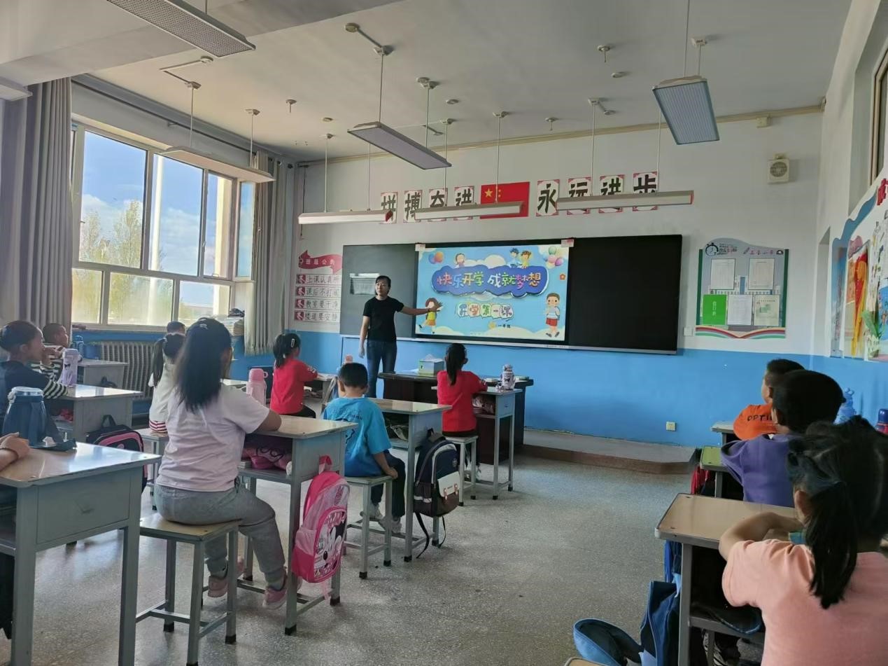 支教队伍在适应环境后,已完全进入工作状态,通过开学第一课给孩子们讲述安全知识,逐渐和孩子们熟悉起来。