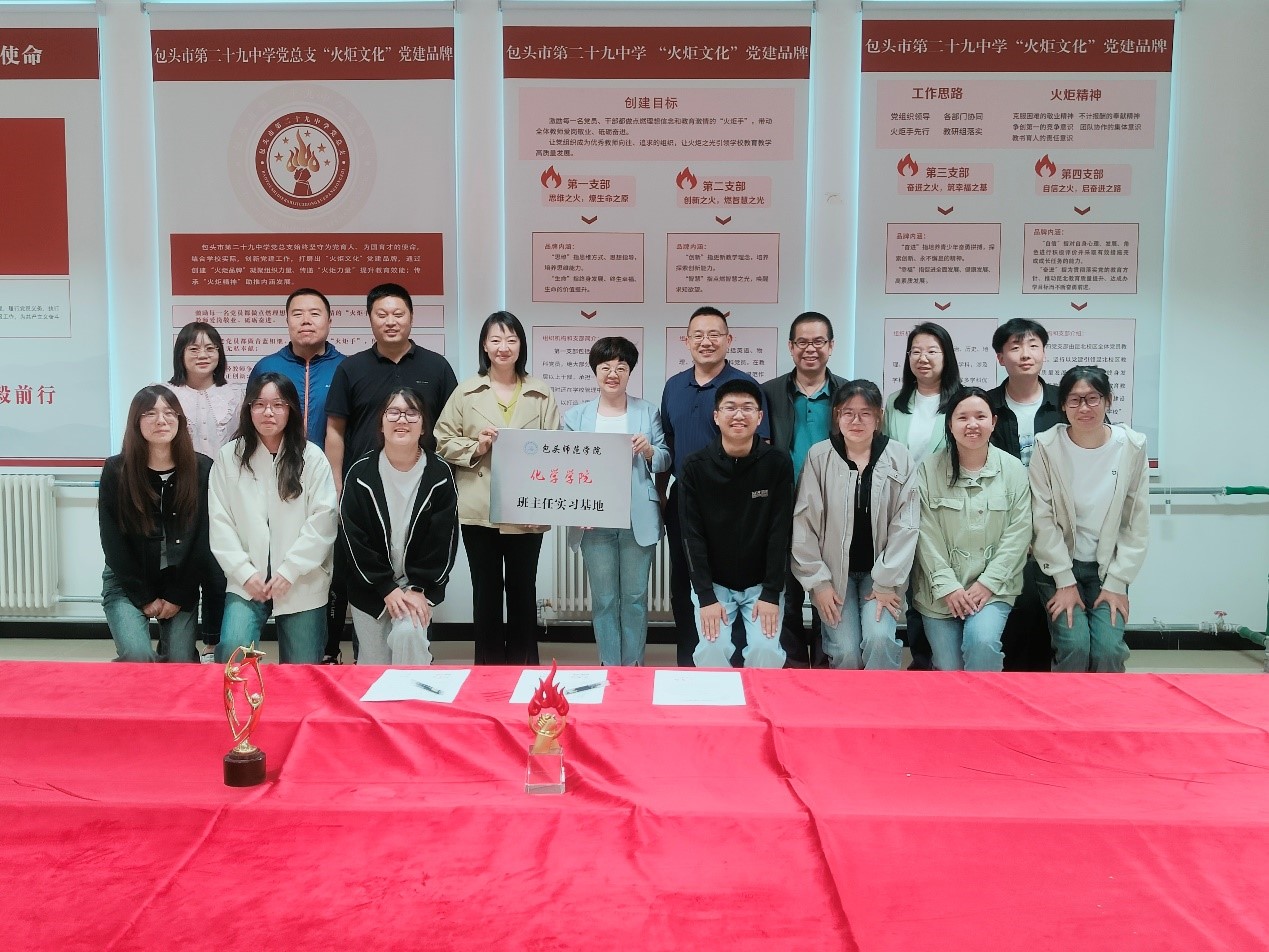 仪式上,化学学院系主任贾倩南博士与包头市第二十九中学闫丽副校长共同签署了实习基地合作协议,并为实习基地揭牌。双方表示,将充分发挥各自优势,共同打造高质量的德育与班主任实习基地,为学生提供实践锻炼的平台,同时也为基层中学提供人才支持和智力保障。