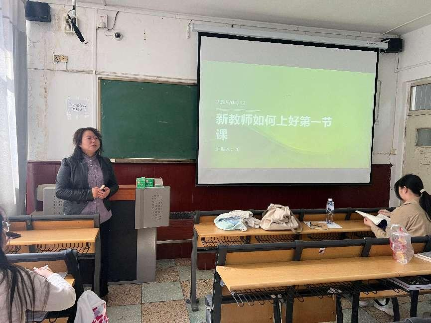 414青山区第一中学教研中心主任贺净老师围绕新教师如何上好第一节课”展开讲座。贺老师围绕青年教师的成长及青山区第一中学对新入职教师的培养,展示了青年教师上好第一节课需要做的准备工作。首先是学习阶段,青年教师一定要多听课、学习同事的教案、反复磨课,这样才能以最快的速度成长。其次是课中展示阶段,新教师要注意引课巧妙、引导探究、组织小组合作、布置多元化作业等问题。最后是反思阶段,她指出不会反思的老师是永远不会进步的。贺老师从这三个阶段入手,全方位地向学生呈现了上好第一节课完整流程,使同学们明确了一堂好课的标准是什么。