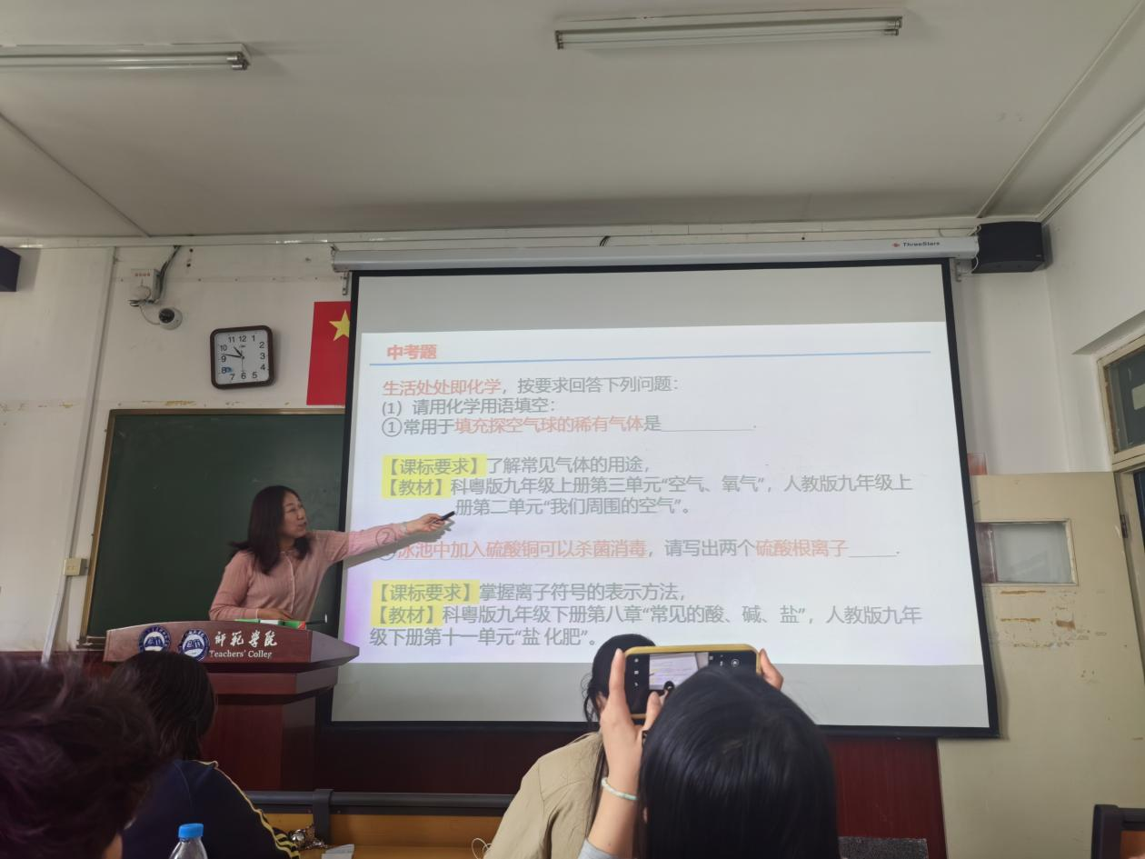 为提升化学师范专业学生的教育能力和综合素养,化学学院秉承“学生中心、产出导向、持续改进”的师范认证理念,充分整合优质教师资源,在本学期《中学名师课堂》课程中开展了“中学名师进课堂”系列讲座活动。活动上阶段邀请到四位在中学化学教育领域颇有建树的教师为2023级化学师范生带来了四场精彩纷呈的专题讲座,分享教学经验与教育智慧。