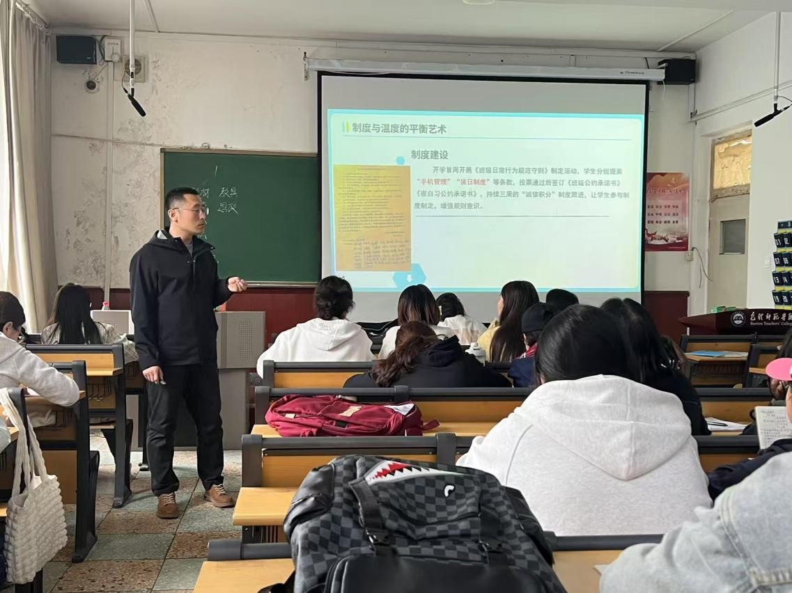 在班级管理方面,苑老师介绍了一系列实用的方法和策略。他提到,建立良好的班级秩序和积极向上的班级文化至关重要,通过制定明确的班级规章制度和组织各类班级活动,可以增强班级凝聚力,培养学生的集体荣誉感和责任感。同时,他还分享了如何有效处理学生之间的矛盾冲突、如何与家长进行良好沟通合作等实际问题的解决办法,让同学们深刻认识到班主任工作的复杂性和艺术性。