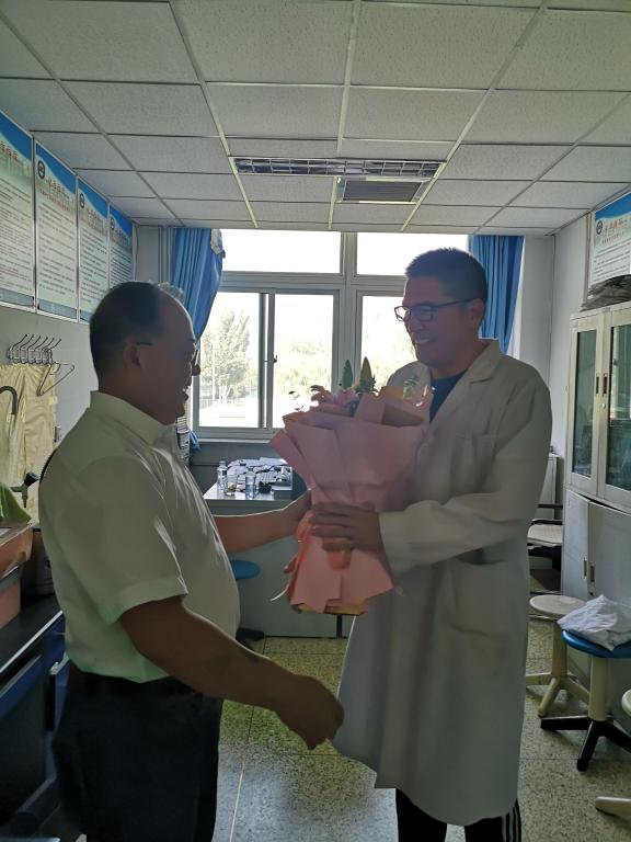 9月10日,学院党总支书记李建军慰问在实验室工作的张高峰老师;