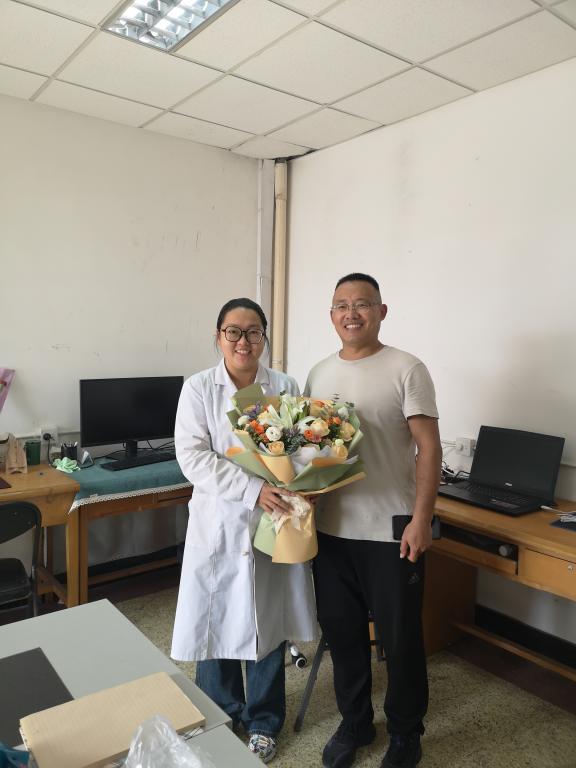 9月10日,院长张骁勇慰问在实验室做实验的老师王菲博士;