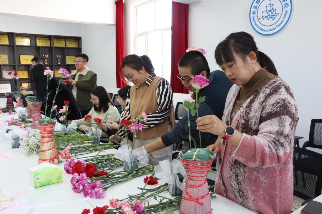 此次妇女节活动,不仅让大家与花相伴,尽情享受了创作的愉悦和艺术的熏陶,也展现出新时代女性自信阳光的精神风采今后将以更加充实饱满的工作热情,投身教学、砥砺芳华,为化学学院建设发展贡献新时代的巾帼力量。(化学学院)