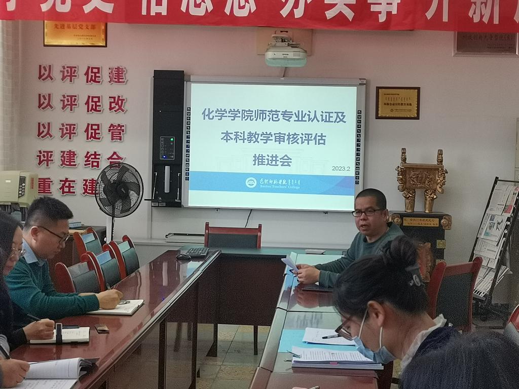 为进一步推进化学学院化学专业师范认证工作,强化化学师范专业内涵建设,根据我校师范类专业认证工作的总体规划及工作进度要求,2月20日下午化学学院组织了2023年度化学专业师范认证推进及本科教育教学审核评估启动工作书记、副院长、全体教务办、学工办、系主任参加了此次推进会。